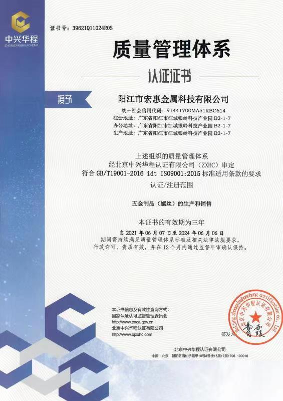 廣東宏惠金屬公司是家20多年一直專注鉆尾螺絲開發(fā)與生產(chǎn)的企業(yè),是國內(nèi)較早做鉆尾的廠家之一,同時(shí)也是國內(nèi)專業(yè)開發(fā)生產(chǎn)鉆尾螺絲的企業(yè)之一。 我司地址為于廣東省陽江市江銀嶺科技園距沈海高速白沙出口不到2公里,距陽江高鐵站也只有十余公里交通便利。 公司占地120畝,擁有超500臺套專業(yè)設(shè)計(jì) 生產(chǎn) 檢測設(shè)備。一個(gè)超200人的專業(yè)團(tuán)隊(duì),能夠嚴(yán)格按照ISO9001質(zhì)量體系要求生產(chǎn)符合GB DIN AS3566 ANSI JIS BS等標(biāo)準(zhǔn)的產(chǎn)品,生產(chǎn)銷售各種高品質(zhì)緊固件系列產(chǎn)品,為中高端客戶提供優(yōu)質(zhì)服務(wù)。也可按照客戶要求設(shè)計(jì)生產(chǎn)各種鉆尾,年產(chǎn)高品質(zhì)碳鋼 不銹鋼鉆尾螺絲2萬余噸.在各大客戶的鼎力支持下產(chǎn)品暢銷全國,并遠(yuǎn)銷亞 非 拉 歐等地,在這20多年發(fā)展的道路上我司堅(jiān)持“以質(zhì)量求生存,以信譽(yù)求發(fā)展”的精神理念不斷完善公司體系。